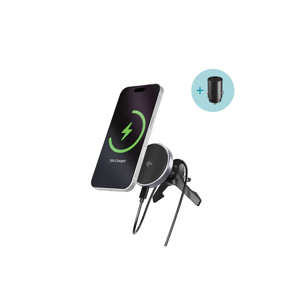 Epico UltraDrive Qi2 Alu Mag+ – võimenda oma sõitu kiire laadimisega See Qi2 sertifitseeritud ja MagSafe-ga ühilduv autoalus laeb telefone traadita kuni 15W võimsusega, kuni 2x kiiremini kui tavalised laadijad. Elegantne alumiiniumkere ja tugev magnet tagavad kindla kinnituse ja efektiivse soojuse hajumise. Universaalne ventilatsiooni klambri hoidja sobib kõikidele õhukanalitele, võimaldades mugavalt reguleerida ekraani nurka navigatsiooni jaoks. Komplekt sisaldab 20W auto adapterit ja 1 m USB-C kaablit.