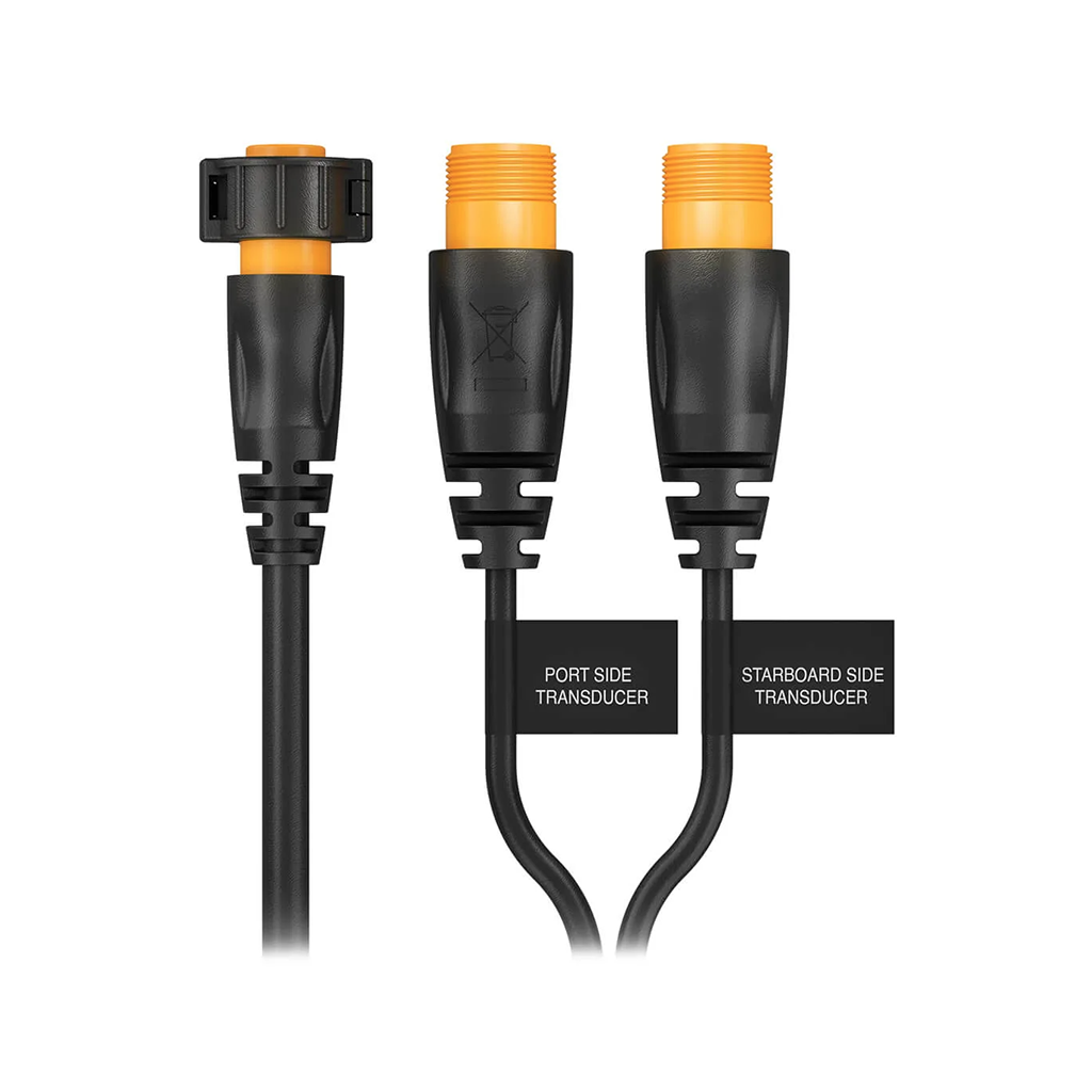 Kasuta 12-viigulist Y-kaablit ja ühenda paadi keret läbiva kinnituse või pordi/tüürpoordi ahtrikinnitusega andurid sonariga. Selle kaabliga saab ühendada kaks eri andurit, et esitada vasak- ja parempoolseid SideVü kujutisi ning vältida mootori alumise osa ja kiilu/kere varjutust. Parempoolne (tüürpoord) andur esitab tavapäraseid, ClearVü ja parempoolseid SideVü kujutisi ning veetemperatuuri ja anduri ID. Vasakpoolne (pakpoord) andur esitab vasakpoolseid SideVü kujutisi. Ühildub kõigi 12-viiguliste GT anduritega.