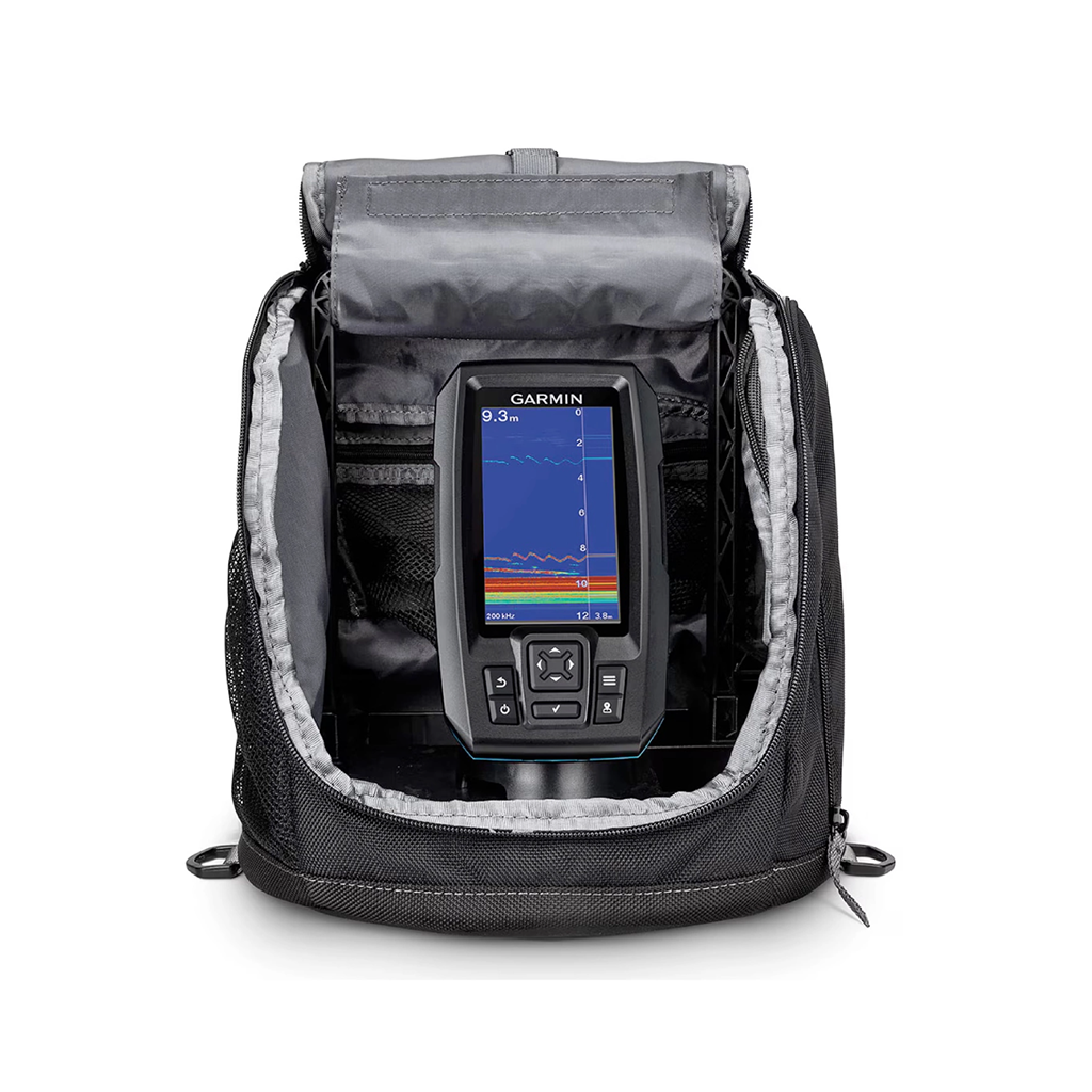 This kit is designed for year-round use. Add a Garmin GT8 or GT15 transducer (sold separately) and you can use your STRIKER Plus 4 on open water from boat or kayak as well. Everything is packed in a robust portаble ice fishing bag with handle and foam float, making it easy to carry between holes and from season to season.