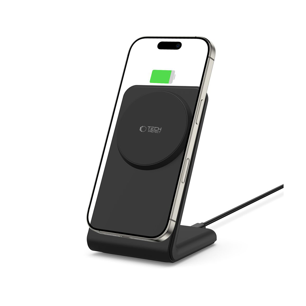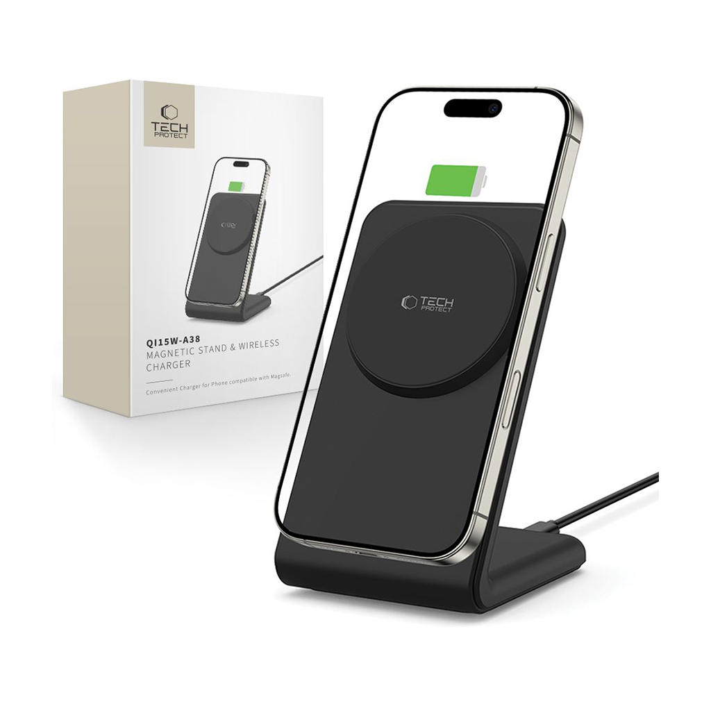 Tech‑Protect QI15W‑A38 on kaasaegne juhtmevaba laadija, millel on MagSafe funktsioon ning stendilahendus — see võimaldab laadida nii vertikaalses kui horisontaalses asendis. Seade on loodud mugavust, turvalisust ja stiili silmas pidades. Läbimõeldud disain võimaldab telefoniga vabalt suhelda, vaadata videoid või kirjutada tekste samal ajal, kui laed.