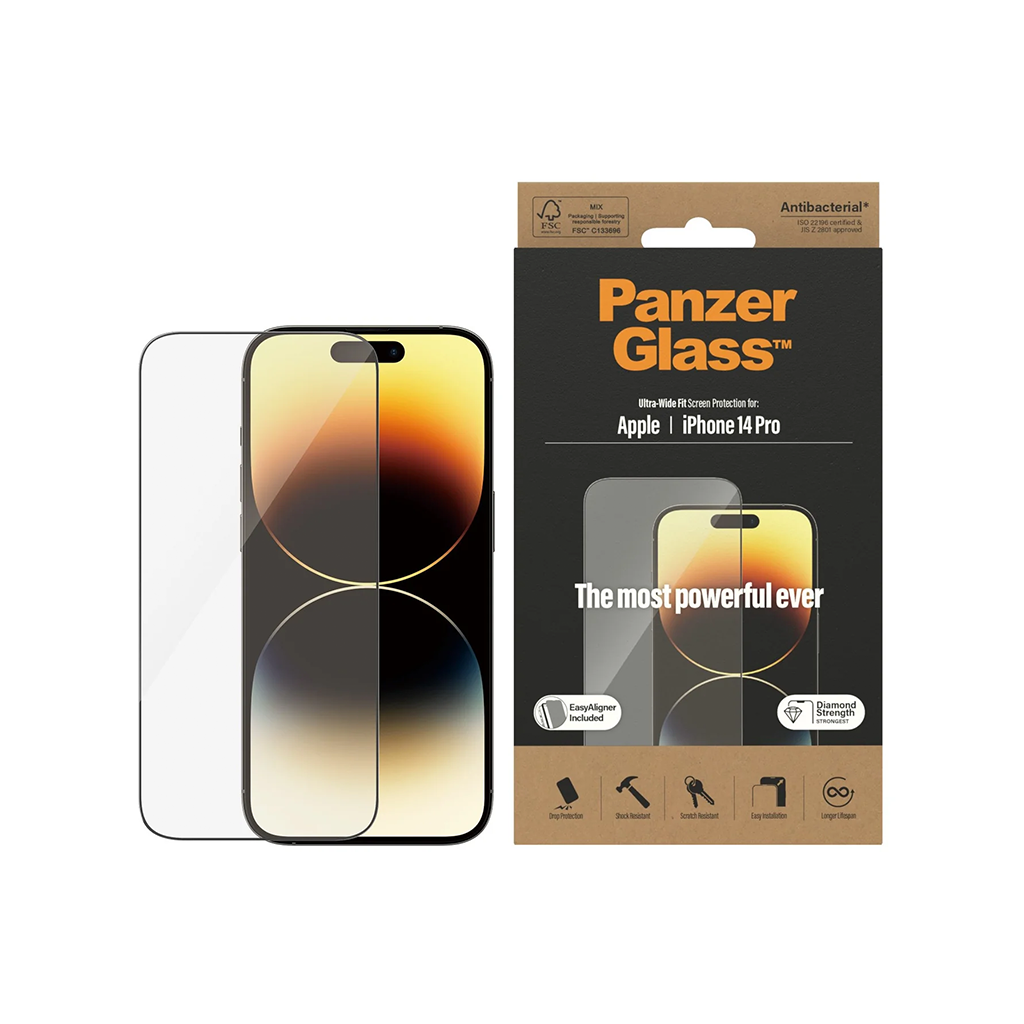 Kaitseklaas Apple iPhone 14 Pro, musta äärega, Ultra-Wide Fit, PanzerGlass - Mobix