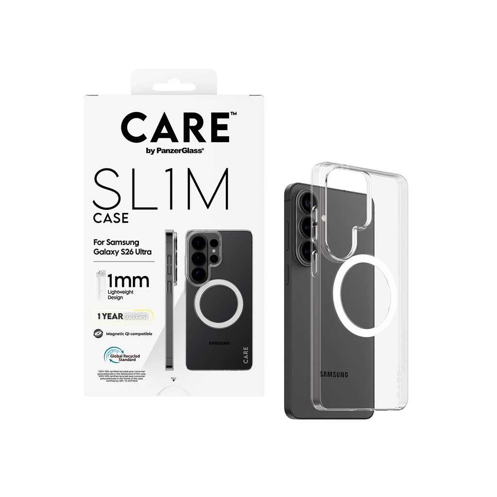 Kaitseümbris SL1M, Samsung Galaxy S26 Ultra, läbipaistev, üliõhuke, Qi2/MagSafe ühilduv, CARE by PanzerGlass