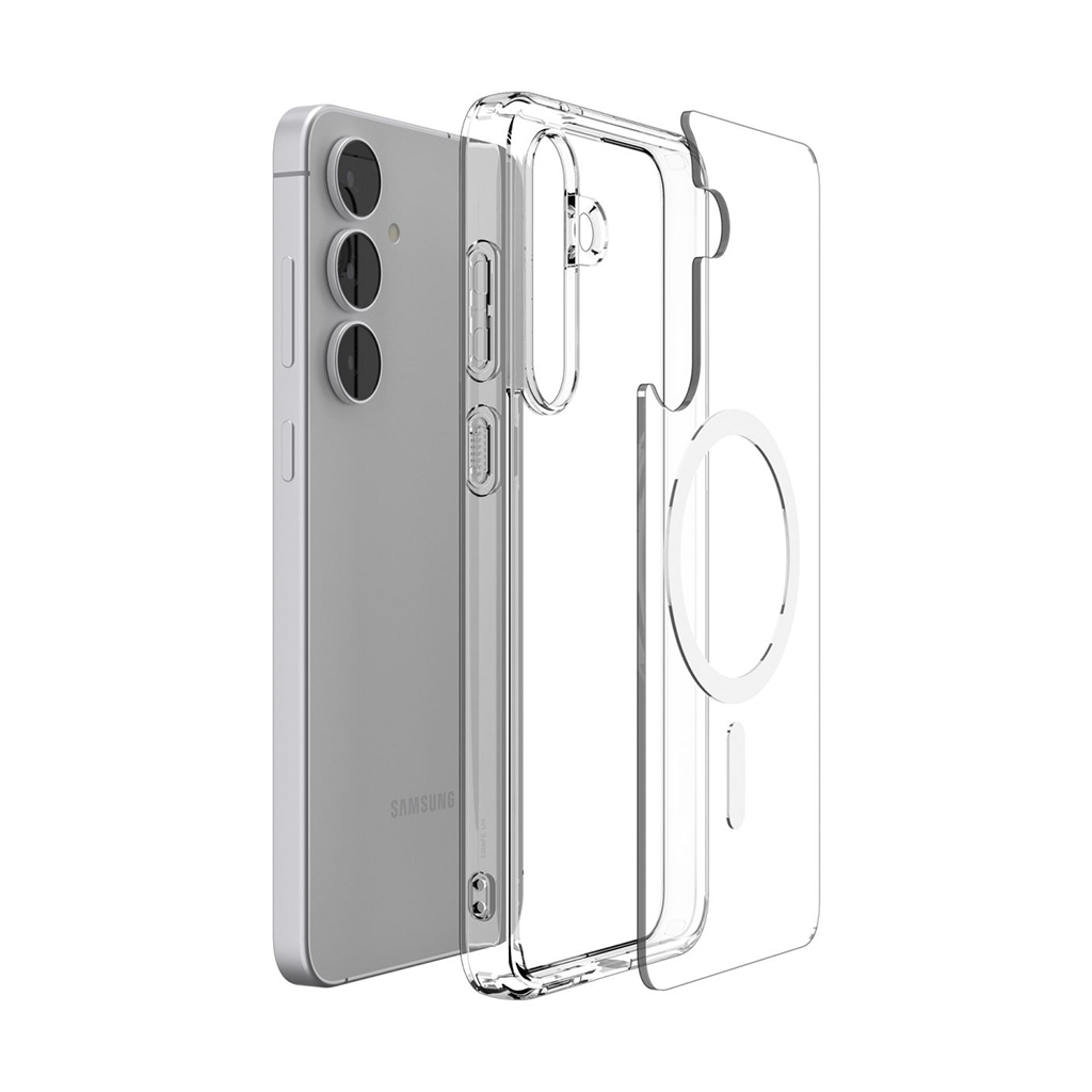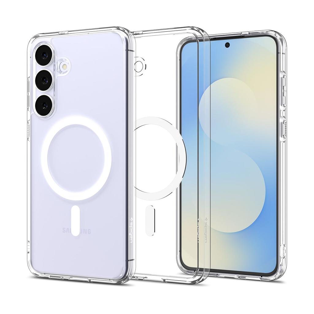 Kaitseümbris Ultra Hybrid (MagFit), Samsung Galaxy S25 FE, läbipaistev valge Qi2/MagSafe ringiga, Spigen - Mobix