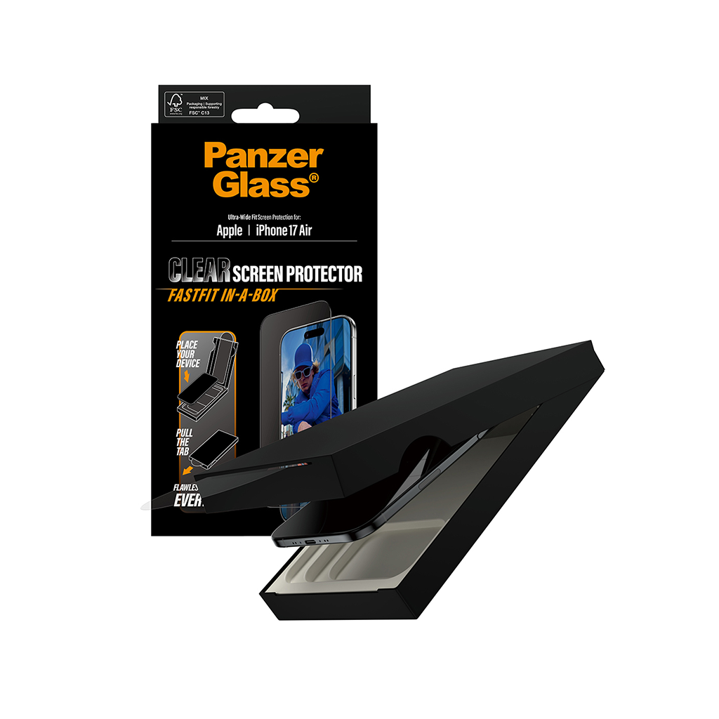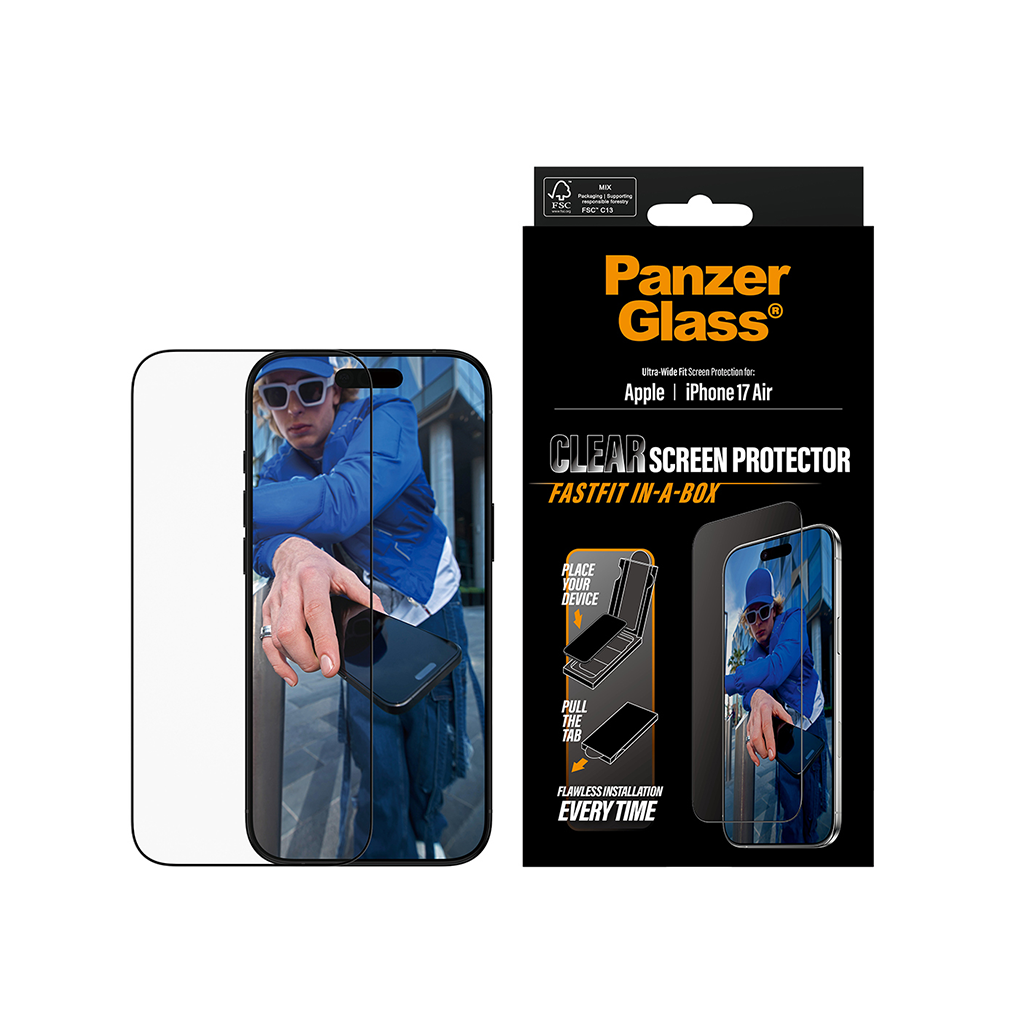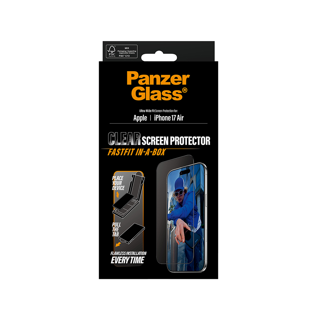 Kiirpaigaldusega kaitseklaas Apple iPhone 17 Air, musta äärega, Ultra-Wide Fit, PanzerGlass - Mobix
