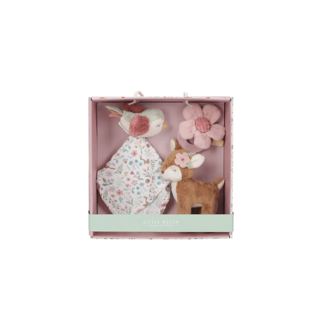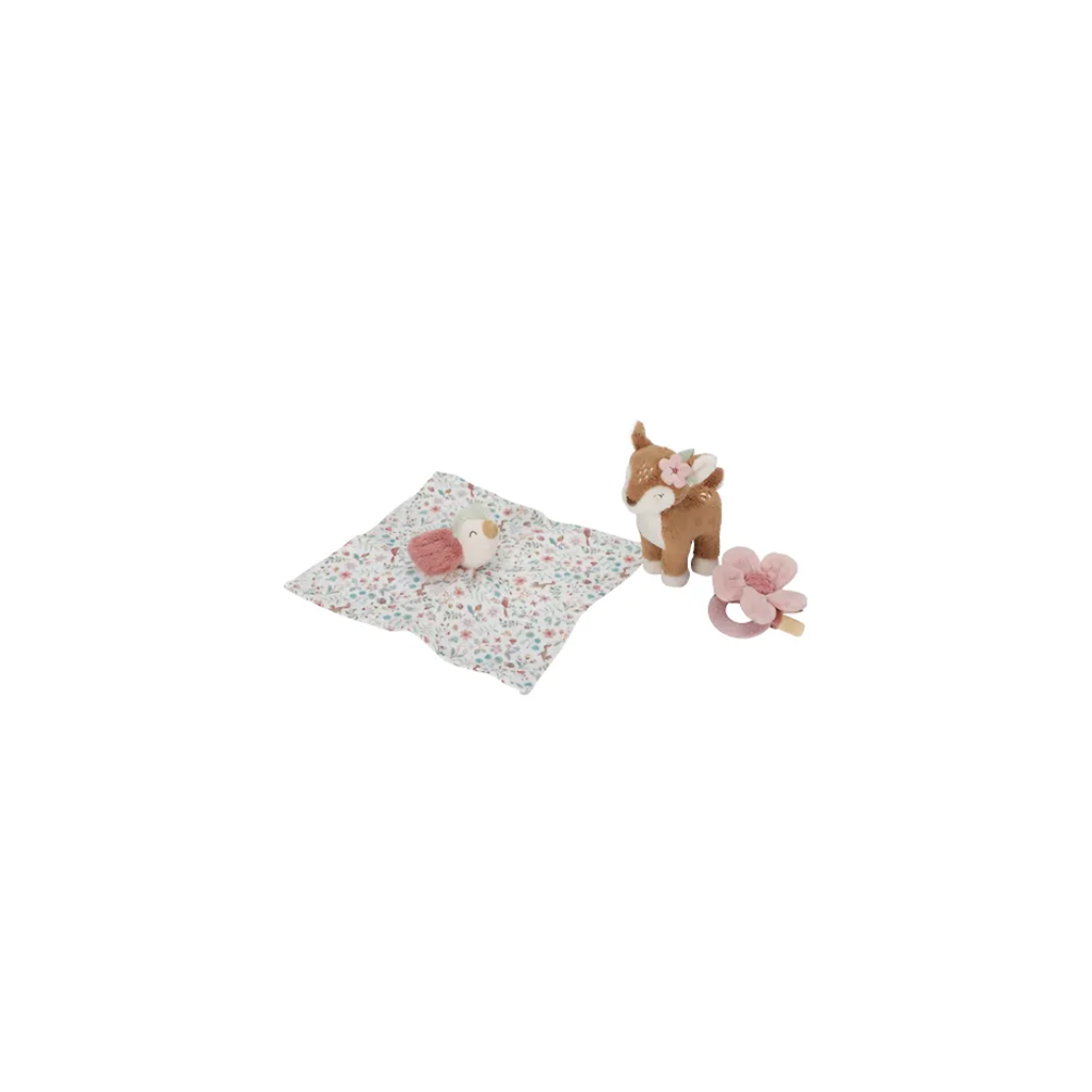 Our Fairy Garden collection of favorites is the perfect baby gift. This beautiful box contains three soft products for sleeping, cuddling and playing. The soft sleep blanket with a little bird is perfect for cuddling, but also good for playing hide and seek. The cuddly goat is always ready for a big hug and play adventures.