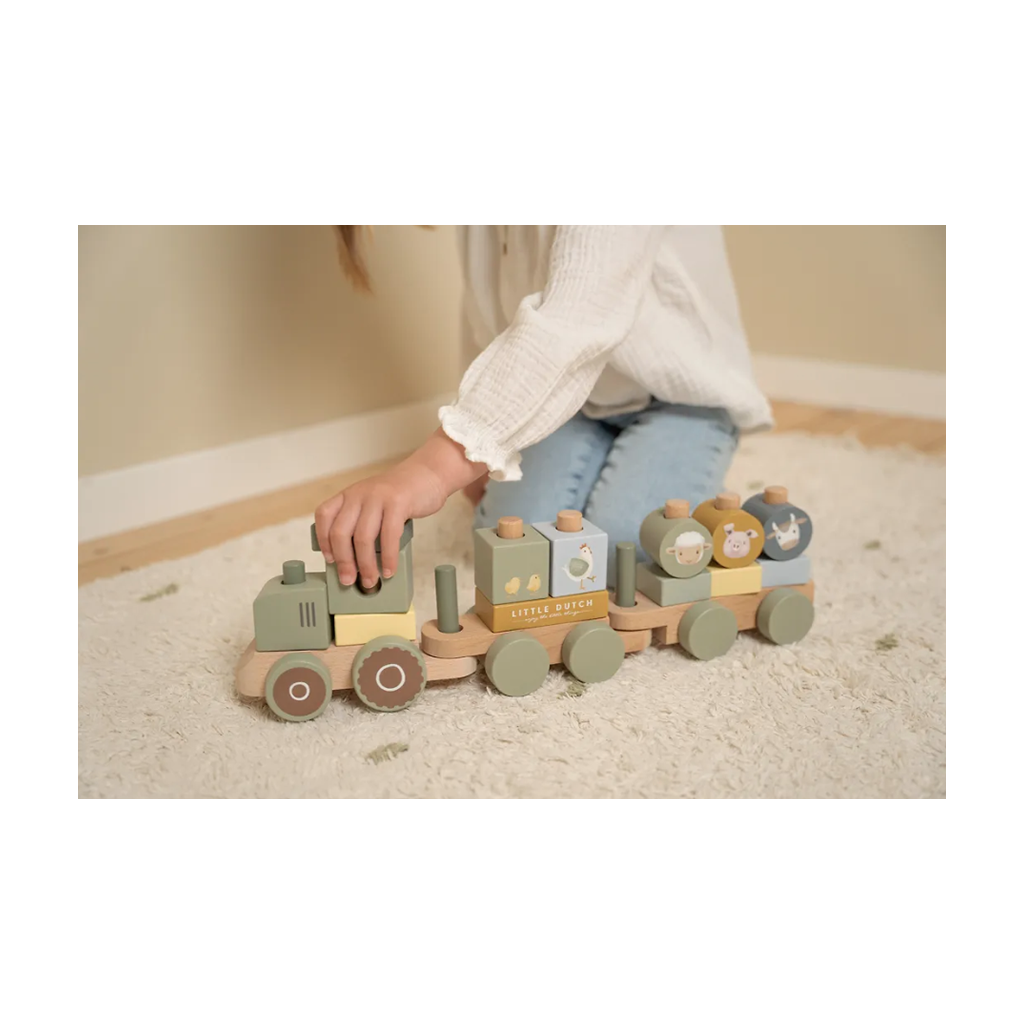 Little Dutch Little Farm Wooden Train Stackable Tractor - Mobix