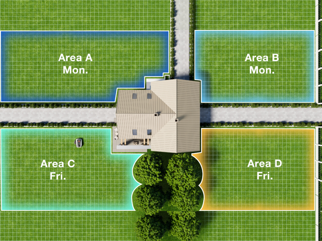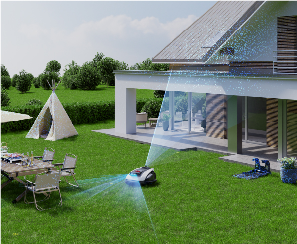Dual-LiDAR süsteem (360° LiDAR + 3D-ToF) koos AI-kaameraga loob sinu aiast detailse kaardi vaid ühe läbimisega.