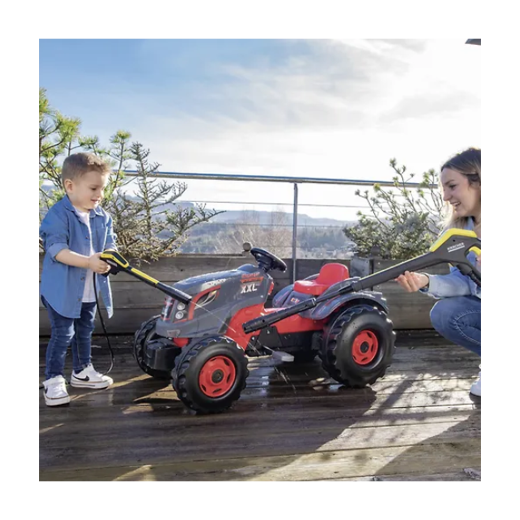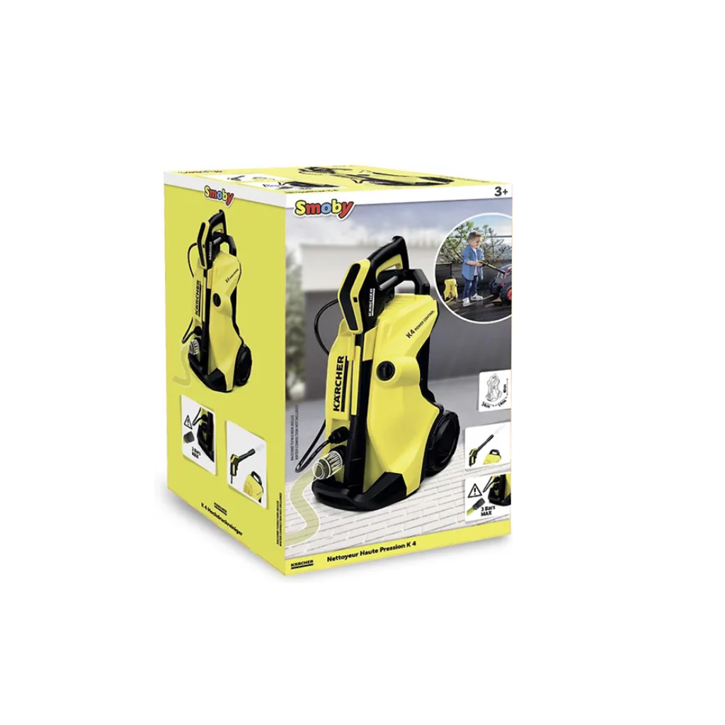 An exact replica of the Kärcher K 4 pressure washer for children. Works just like the real thing: connected directly to the garden hose. Pull the trigger and washing toys is more fun than ever! Pressure comparable to that of a garden hose. Easy to connect to the garden hose. Wheels and handle make the washer easy to move.